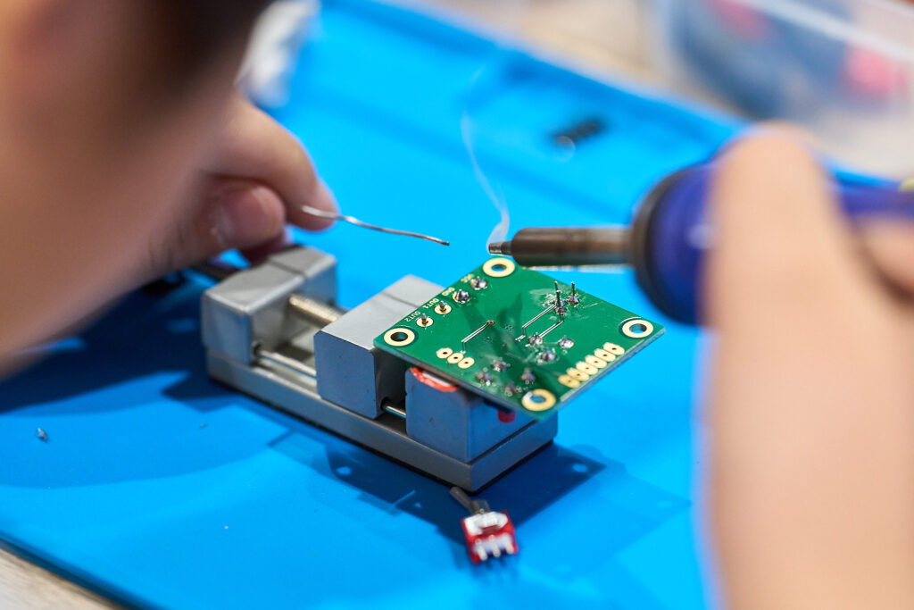 電子部品と基板、モーターの構造と電子工作の基礎を学ぶ講座。速度や回転方法を変化させ、動きを制御することを通じて、自身のアイデアを実装する方法としての「電子工作」に挑戦します。