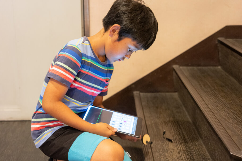 音の原理や特性とともに、マイクやスピーカーによる表現方法を学ぶ講座。はじめに、オリジナルのシステムを使って、音を発見し、採集することを通して、音をよく聴くことを体験します。次に、音を使った視覚的な表現にも挑戦。複数のアクティビティを通じて音の伝達の仕組みを理解し、音が響くことについて探求します。