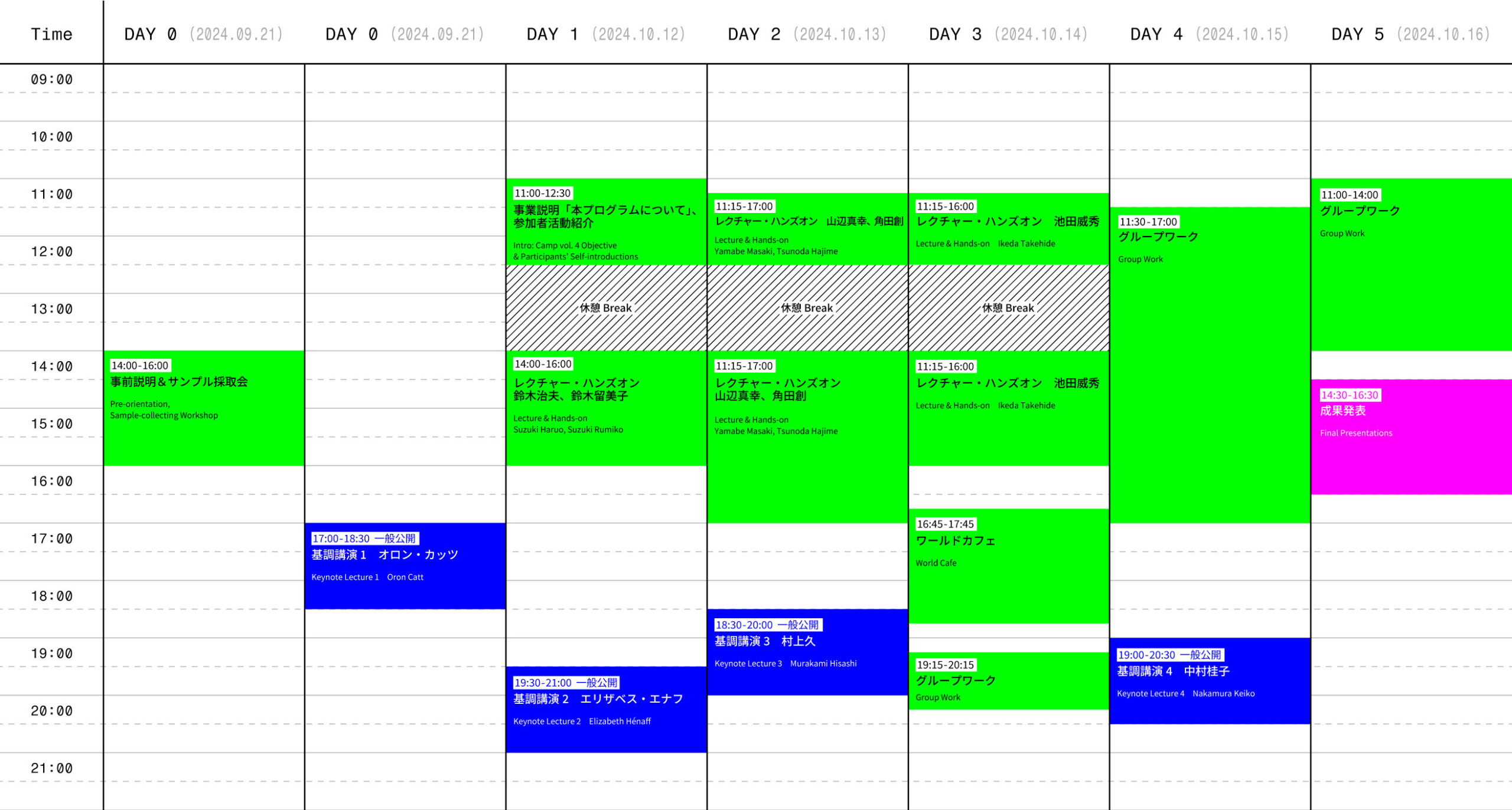 During the five-day camp, participants attempt to capture ecosystems as data and express them as information through the observation of microbial communities, plants and animals using DNA analysis, sensors and cameras. The exhibition presents scenes from the workshops and the results of the artworks and prototypes made by the participants.