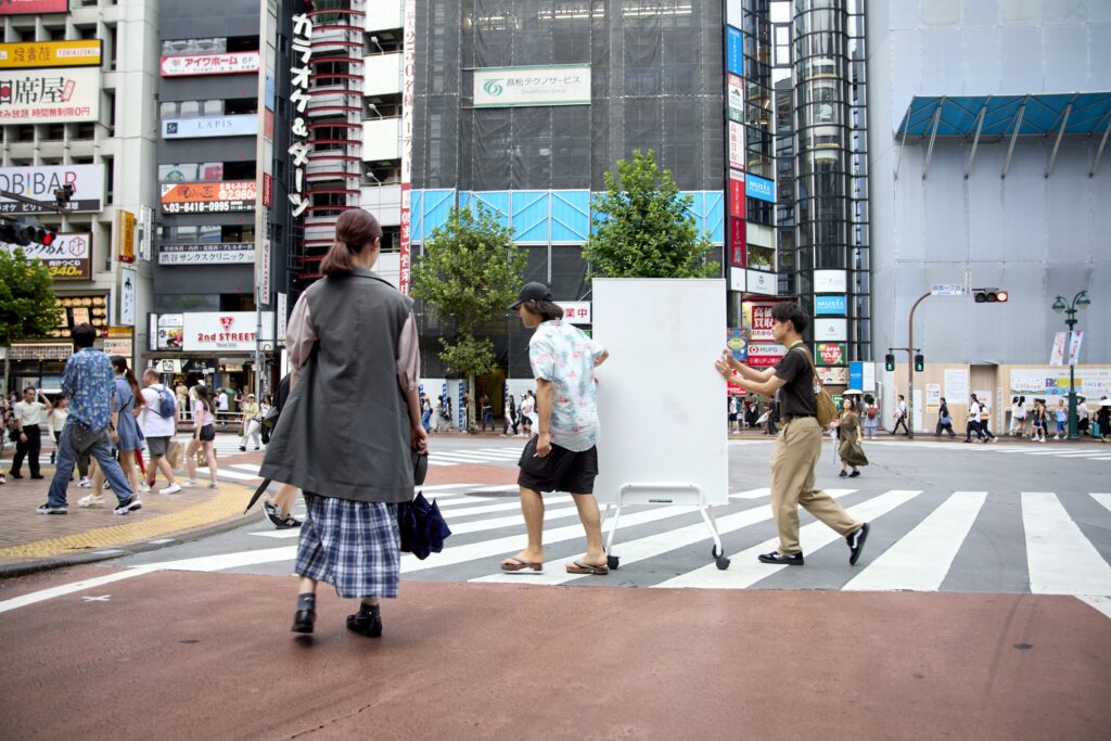 Tsugawa: “The whiteboards are a great choice–everyone and anyone can (re)write on it and erase anything on it. In addition to the pedestrians, it may be interesting to see if the members of the group also become subjects of observation and analysis.