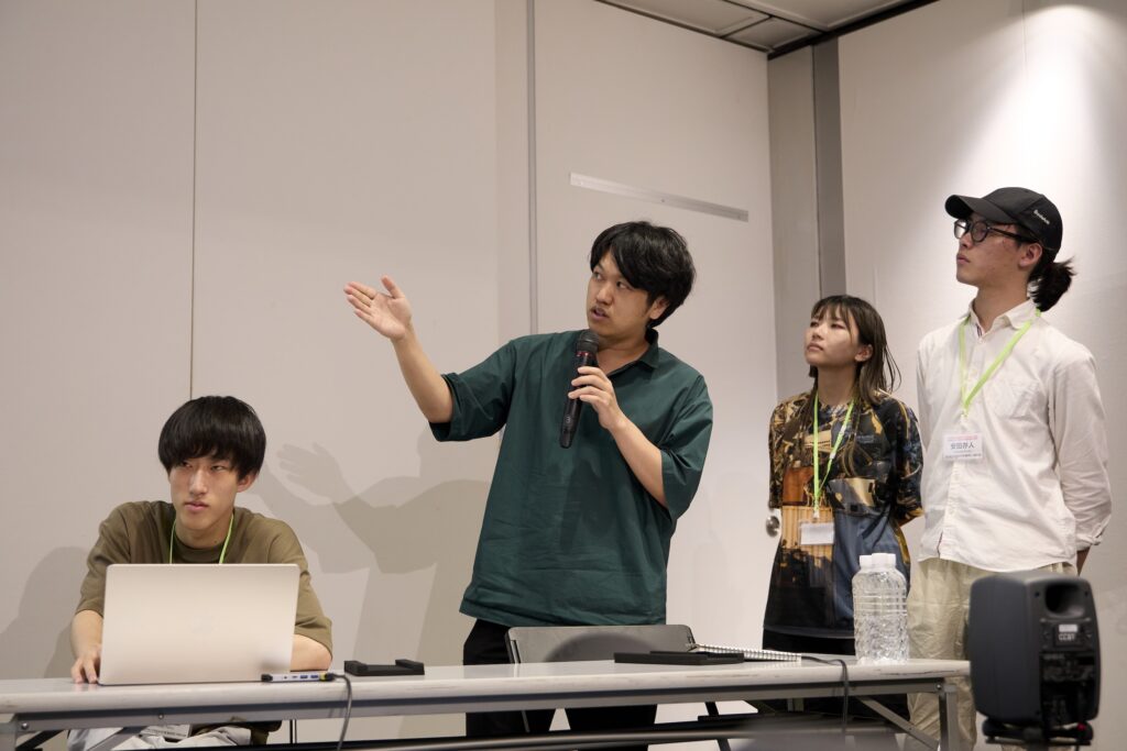 In the evening, it was time for the progress report where Camp Director Tsugawa, yesterday’s lecturer Kawashima, and other facilitators joined to provide feedback. The ideas presented were: 1) research on abandoned plastic umbrellas, 2) re-shaping the boundaries of sonic experiences, 3) installing whiteboards as open spaces, 4) creating spaces to eat bento boxes, 5) designing a shrine dedicated to washed-up objects for visitors to pay homage to, and 6) making recipes for savoring/appreciating the city. As Tsugawa, Kawashima, and the facilitators gave constructive feedback, the groups were now tasked with the challenge of planning how to materialize these unique ideas into presentable exhibits.