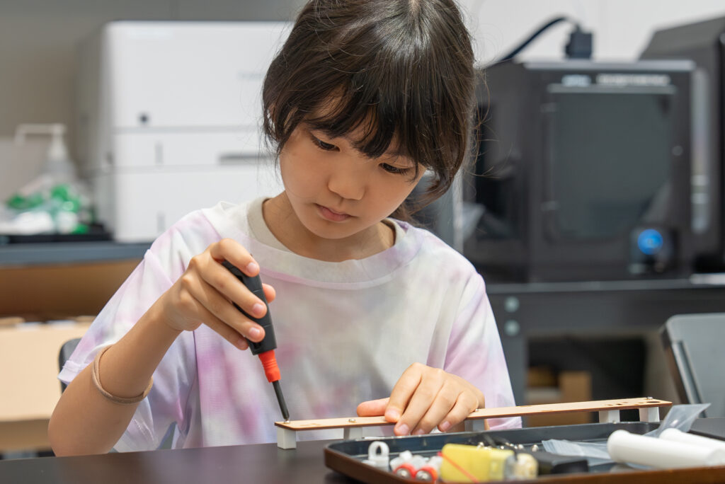 シビック・クリエイティブ・ベース東京[CCBT]では、デジタルテクノロジーを使ったものづくりの手習いのための道場「ひらめく☆道場」を開講しています。CCBTにあるファブリケーション機器を使ったり、電子工作やプログラミング、デザインなどさまざまな創作活動に挑戦したりするなど、毎月テーマを変えて実施しています。