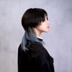 男性がカメラに向かってまっすぐに見つめている。彼はライトブルーの柄シャツを着ており、背景は白い壁になっている。髪は肩までの長さで、自然なスタイルにまとまっている。