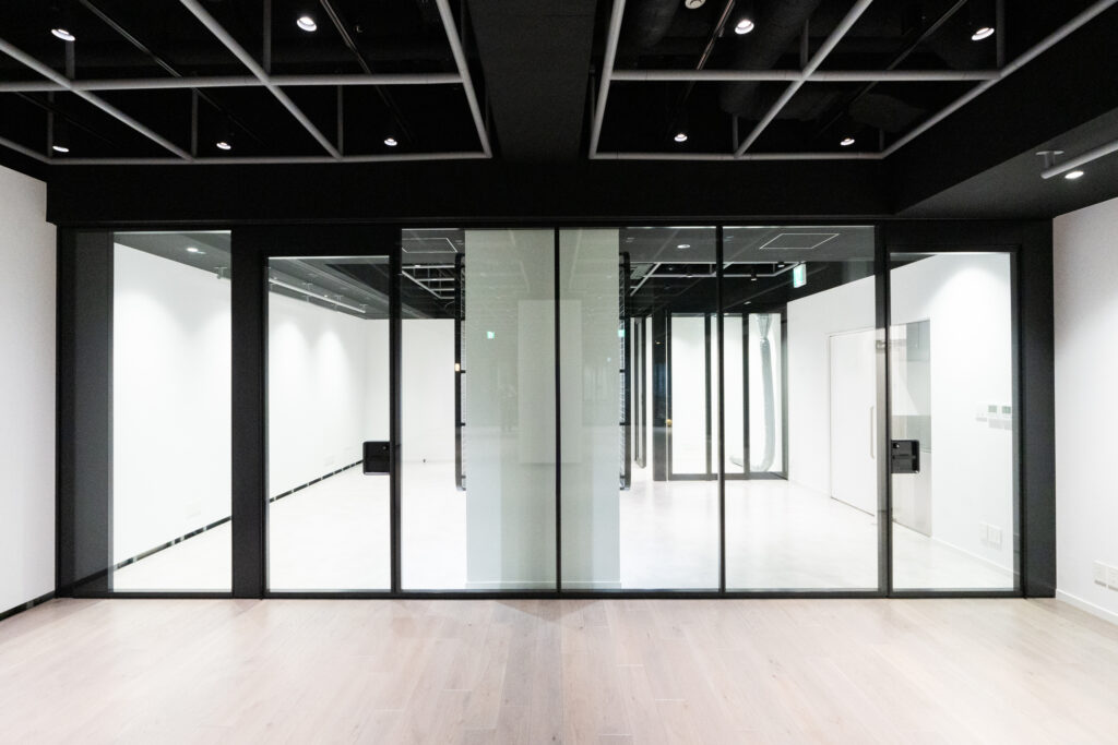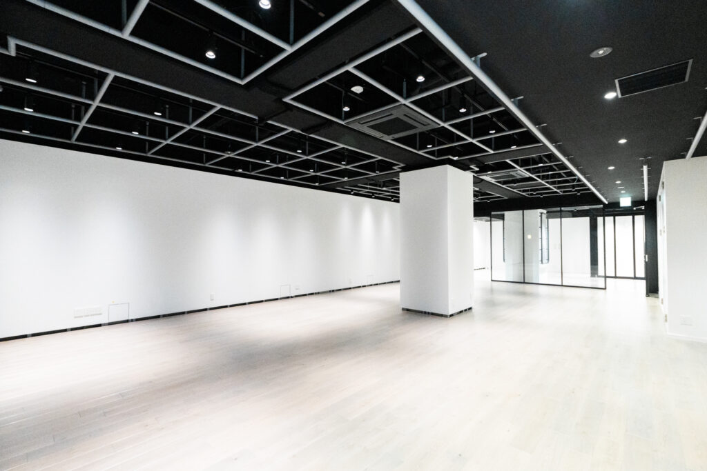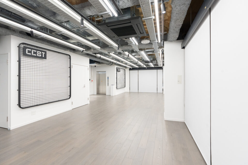 CCBT では可動壁が各スペースを仕切っているため、利用目的に合わせた柔軟な空間設計が可能です。ファブリケーション機器および映像・音響機器を完備しており、クリエイション(制作)と展示の両機能を併せ持つ環境を実現しました。